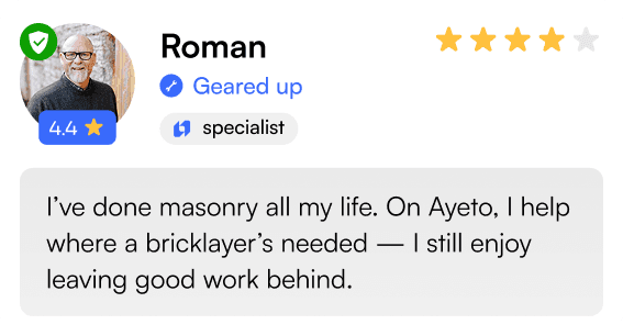 We match new clients with skilled pros every day. Over 900 users have already handled painting, repairs, installs and more with Ayeto.
