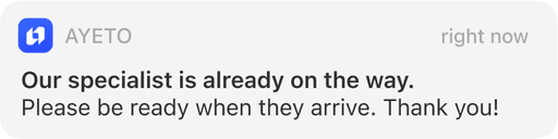 Download Ayeto and always have us at your fingertips, whether you're at home, at work or on the go. The app is free, with no subscription and no hidden fees.